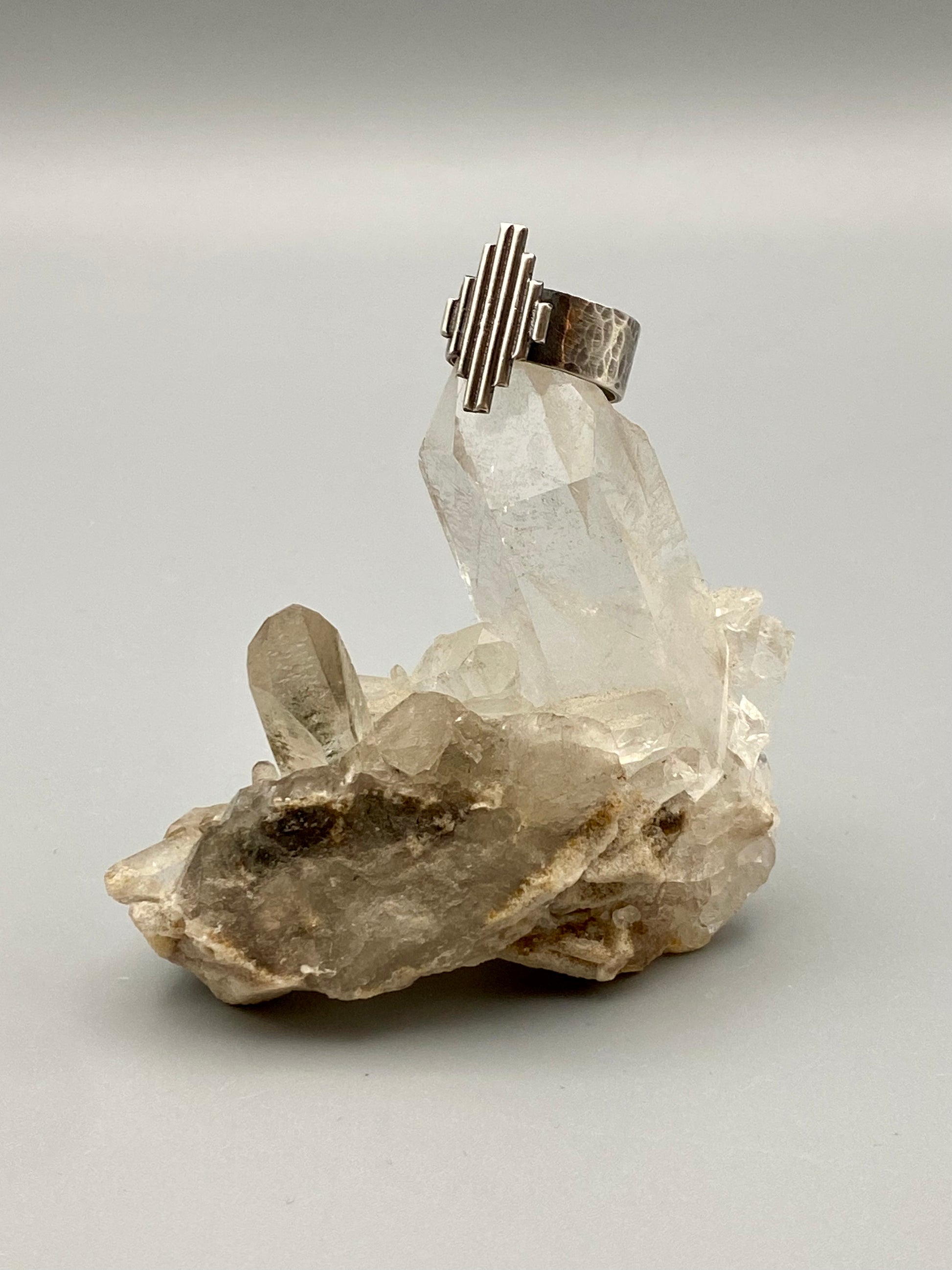 this sterling silver ring is solid, weighty, and hand-fabricated in sterling silver. textured wide band.